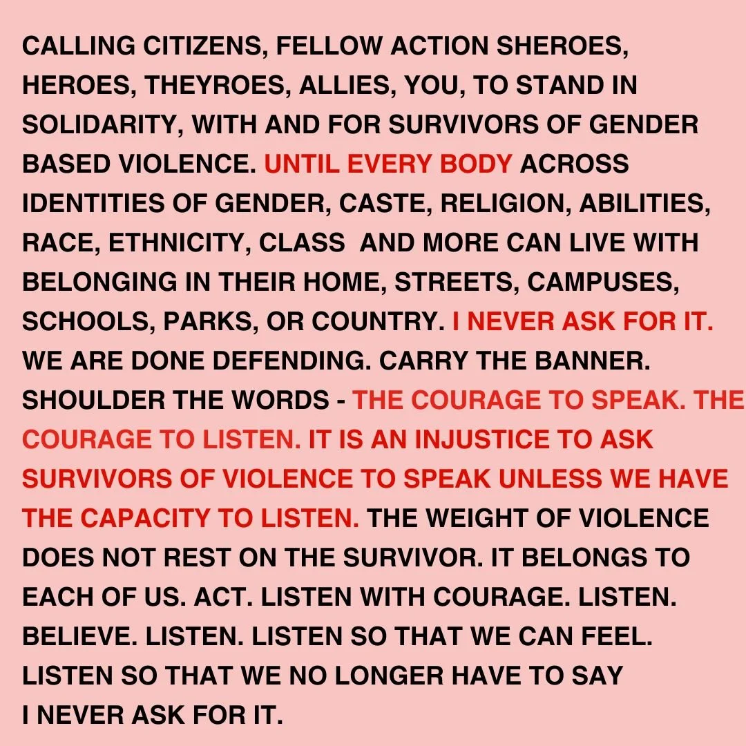 For me, the words mean honesty and rigour that is essential to feminist practice. While expression and speaking one's truth is celebrated quite a lot, we also need to emphasise on listening as feminist praxis.